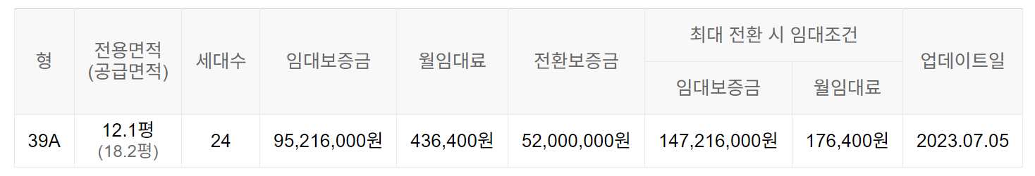 임대보증금 및 월 임대료는 입주자 모집공고일 기준이며, 보증금 최대 전환 시 변동될 수 있습니다.