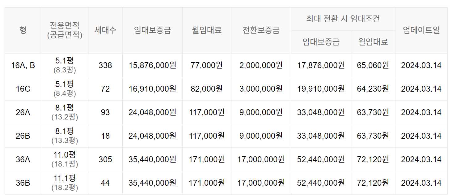 임대보증금 및 월 임대료는 입주자 모집공고일 기준이며, 보증금 최대 전환 시 변동될 수 있습니다.