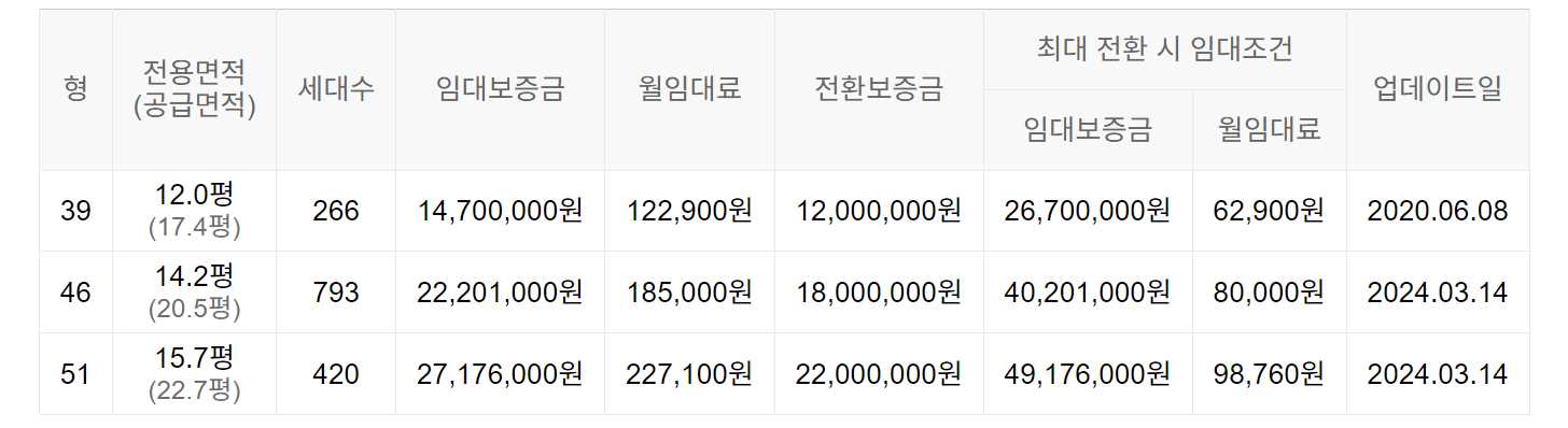 임대보증금 및 월 임대료는 입주자 모집공고일 기준이며, 보증금 최대 전환 시 변동될 수 있습니다.