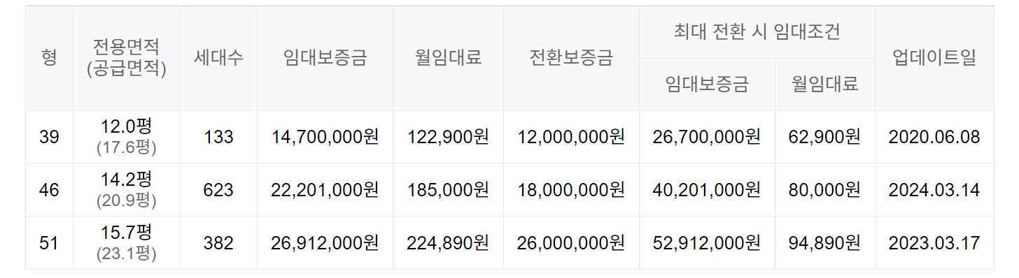 임대보증금 및 월 임대료는 입주자 모집공고일 기준이며, 보증금 최대 전환 시 변동될 수 있습니다.