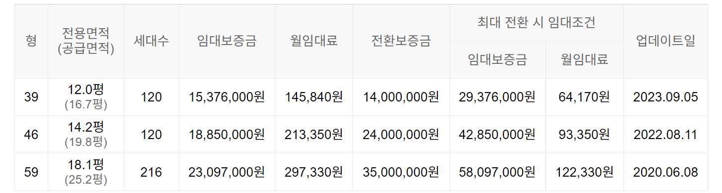 임대보증금 및 월 임대료는 입주자 모집공고일 기준이며, 보증금 최대 전환 시 변동될 수 있습니다.