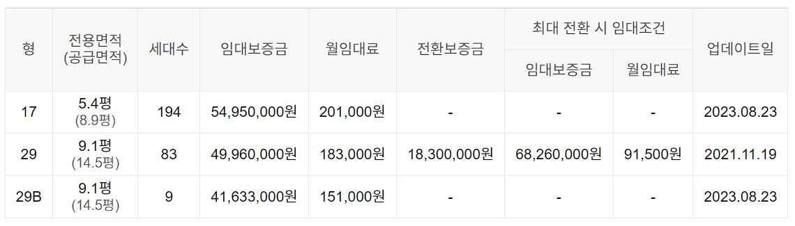 임대보증금 및 월 임대료는 입주자 모집공고일 기준이며, 보증금 최대 전환 시 변동될 수 있습니다.