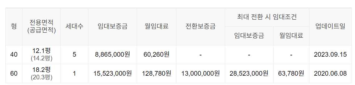 임대보증금 및 월 임대료는 입주자 모집공고일 기준이며, 보증금 최대 전환 시 변동될 수 있습니다.