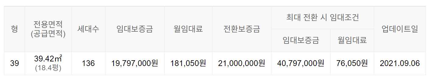 임대보증금 및 월 임대료는 입주자 모집공고일 기준이며, 보증금 최대 전환 시 변동될 수 있습니다.