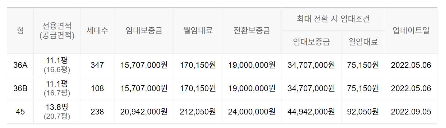 임대보증금 및 월 임대료는 입주자 모집공고일 기준이며, 보증금 최대 전환 시 변동될 수 있습니다.