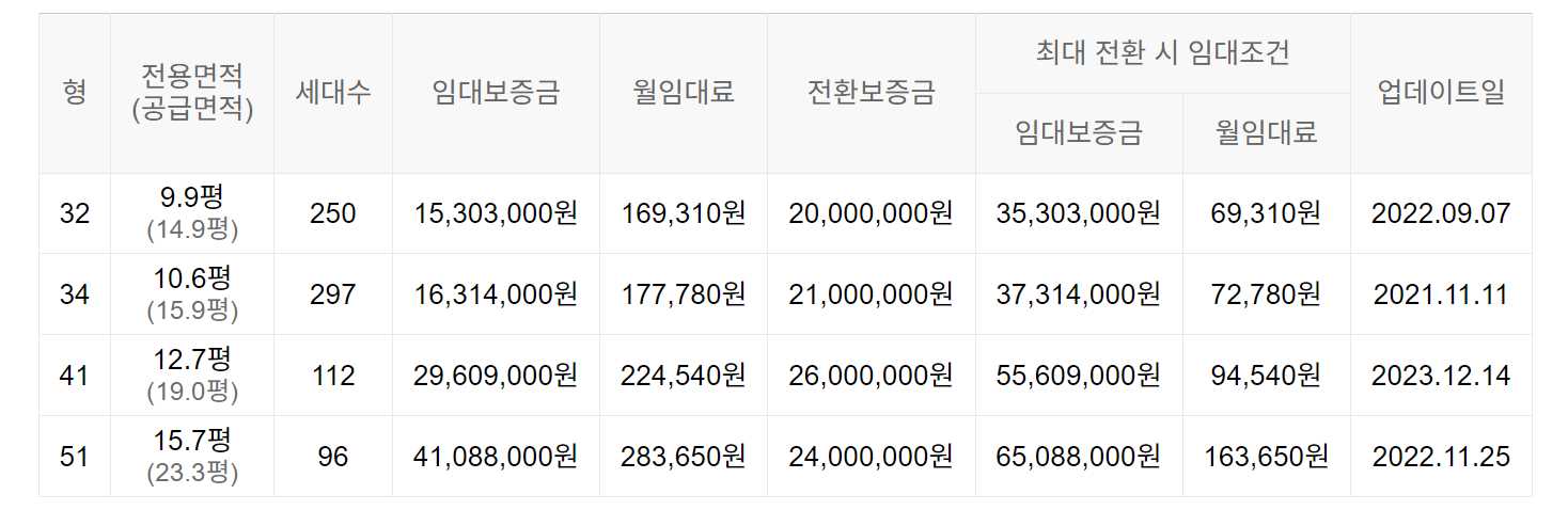 임대보증금 및 월 임대료는 입주자 모집공고일 기준이며, 보증금 최대 전환 시 변동될 수 있습니다.