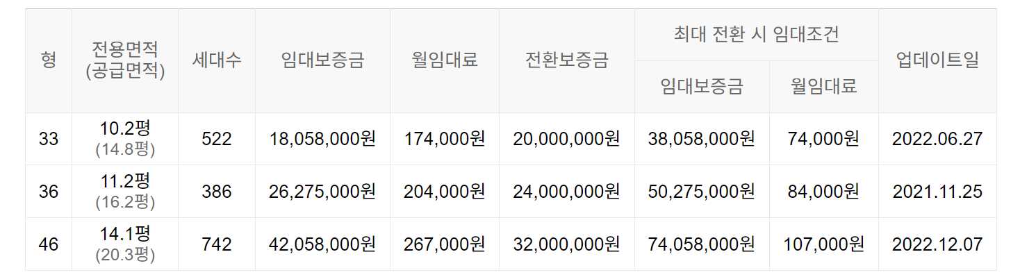 임대보증금 및 월 임대료는 입주자 모집공고일 기준이며, 보증금 최대 전환 시 변동될 수 있습니다.