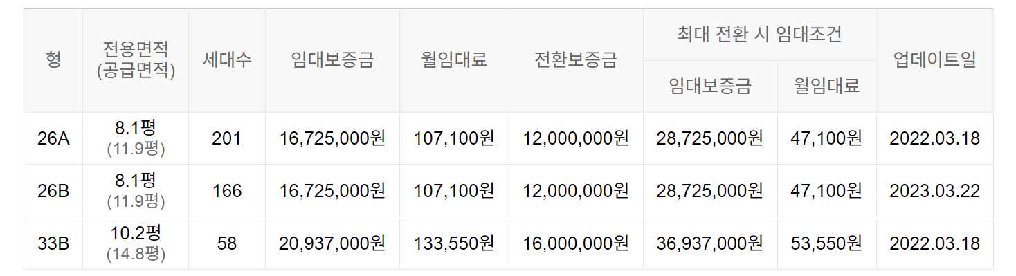 임대보증금 및 월 임대료는 입주자 모집공고일 기준이며, 보증금 최대 전환 시 변동될 수 있습니다.