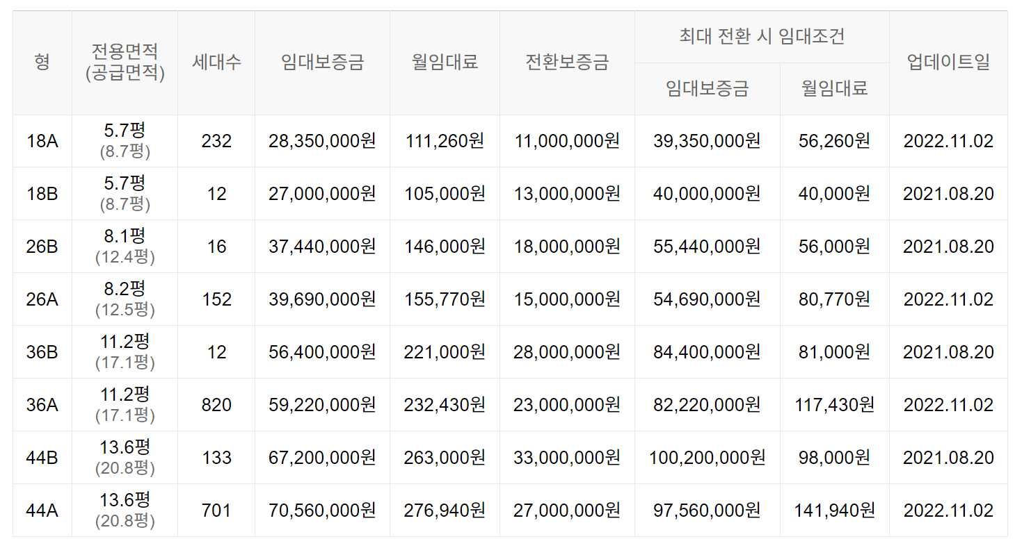 임대보증금 및 월 임대료는 입주자 모집공고일 기준이며, 보증금 최대 전환 시 변동될 수 있습니다.