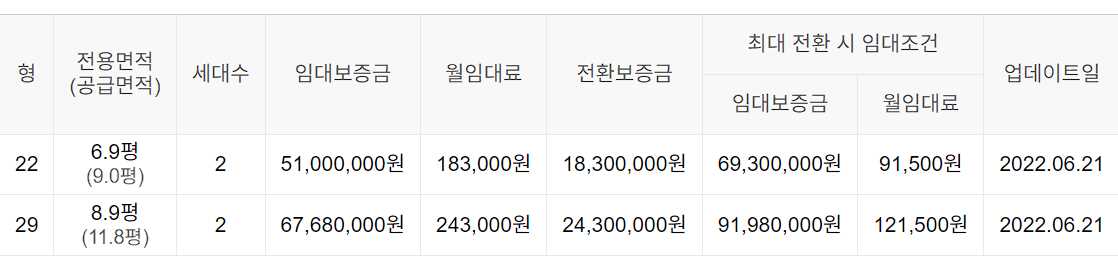 임대보증금 및 월 임대료는 입주자 모집공고일 기준이며, 보증금 최대 전환 시 변동될 수 있습니다.