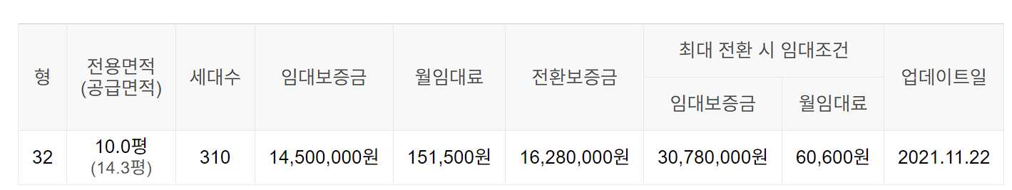 임대보증금 및 월 임대료는 입주자 모집공고일 기준이며, 보증금 최대 전환 시 변동될 수 있습니다.
