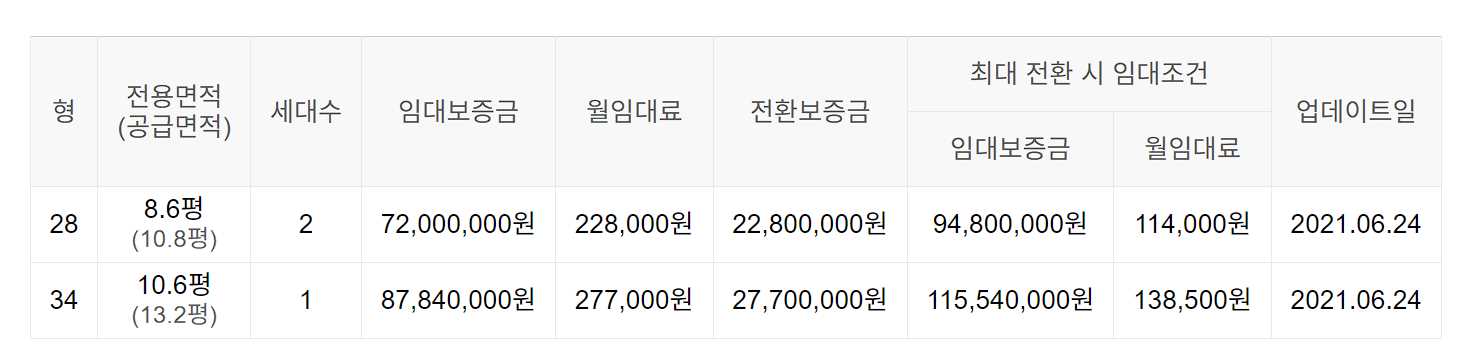 임대보증금 및 월 임대료는 입주자 모집공고일 기준이며, 보증금 최대 전환 시 변동될 수 있습니다.
