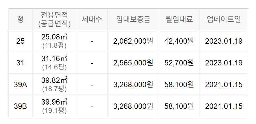 임대보증금 및 월 임대료는 입주자 모집공고일 기준이며, 보증금 최대 전환 시 변동될 수 있습니다.