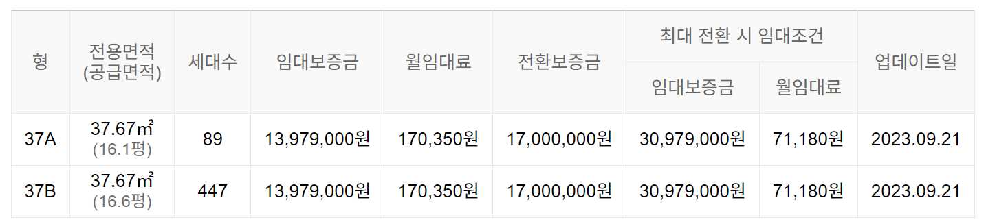 임대보증금 및 월 임대료는 입주자 모집공고일 기준이며, 보증금 최대 전환 시 변동될 수 있습니다.