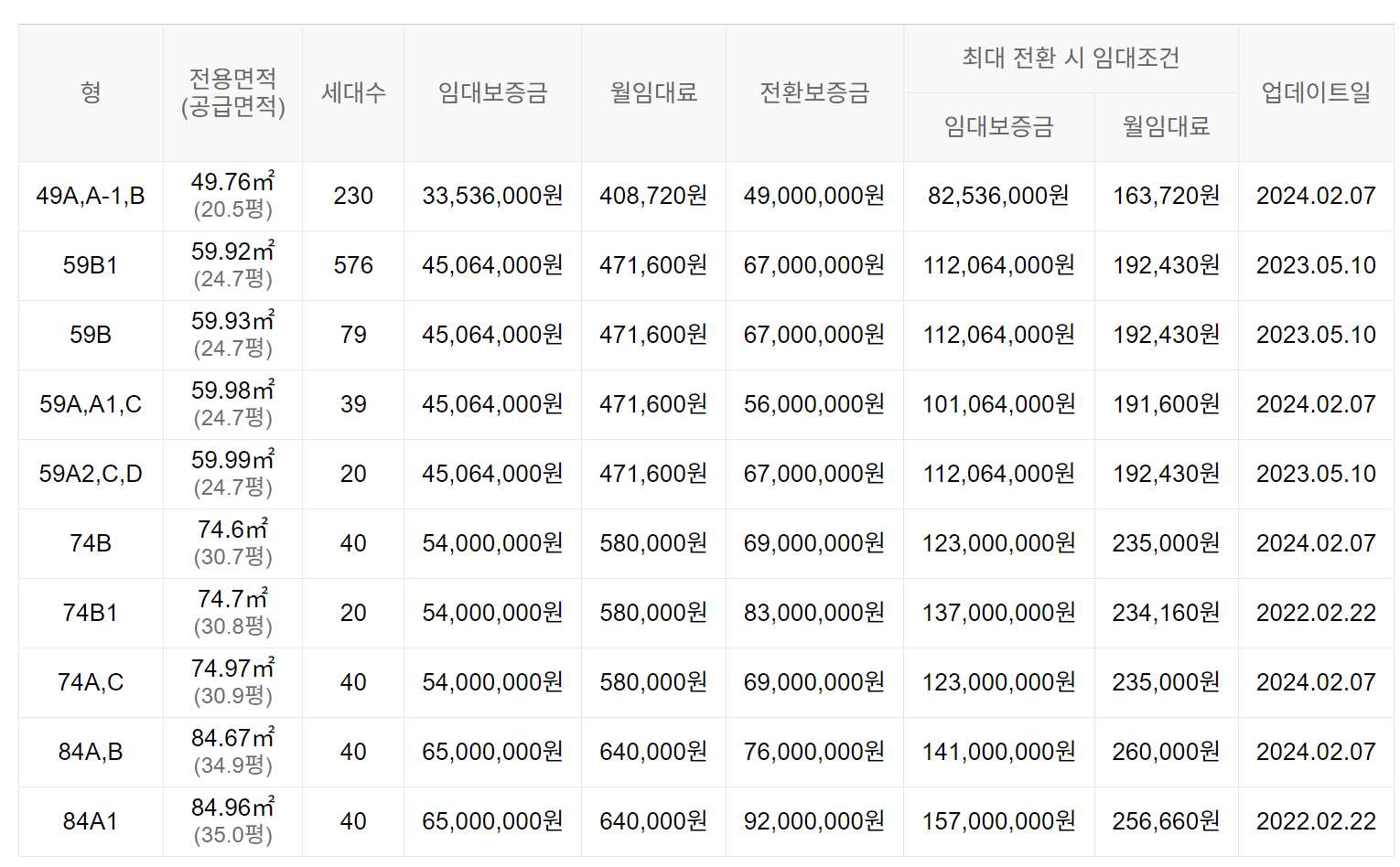 임대보증금 및 월 임대료는 입주자 모집공고일 기준이며, 보증금 최대 전환 시 변동될 수 있습니다.