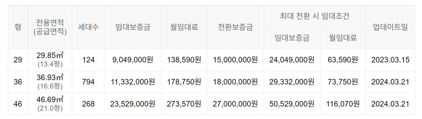 임대보증금 및 월 임대료는 입주자 모집공고일 기준이며, 보증금 최대 전환 시 변동될 수 있습니다.