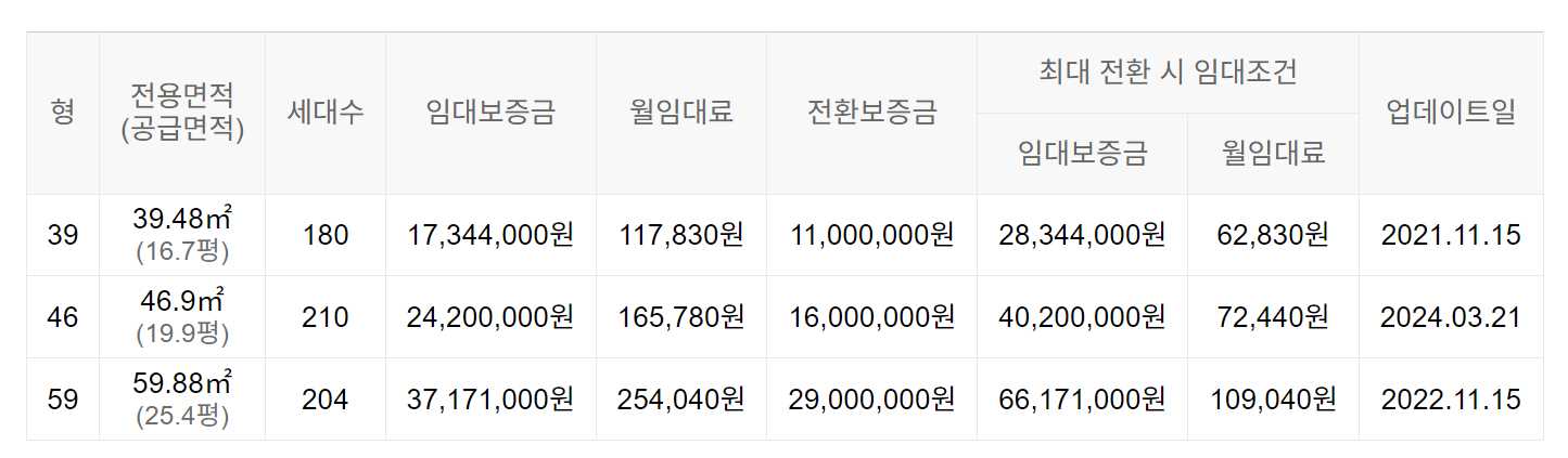 임대보증금 및 월 임대료는 입주자 모집공고일 기준이며, 보증금 최대 전환 시 변동될 수 있습니다.