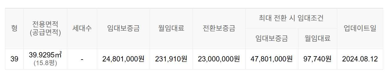 임대보증금 및 월 임대료는 입주자 모집공고일 기준이며, 보증금 최대 전환 시 변동될 수 있습니다.