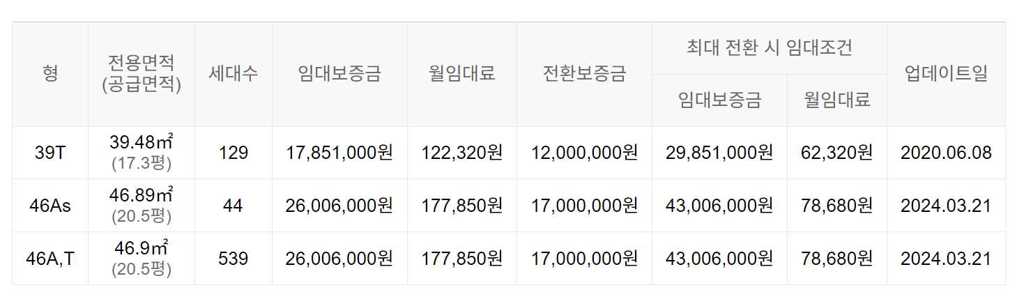 임대보증금 및 월 임대료는 입주자 모집공고일 기준이며, 보증금 최대 전환 시 변동될 수 있습니다.