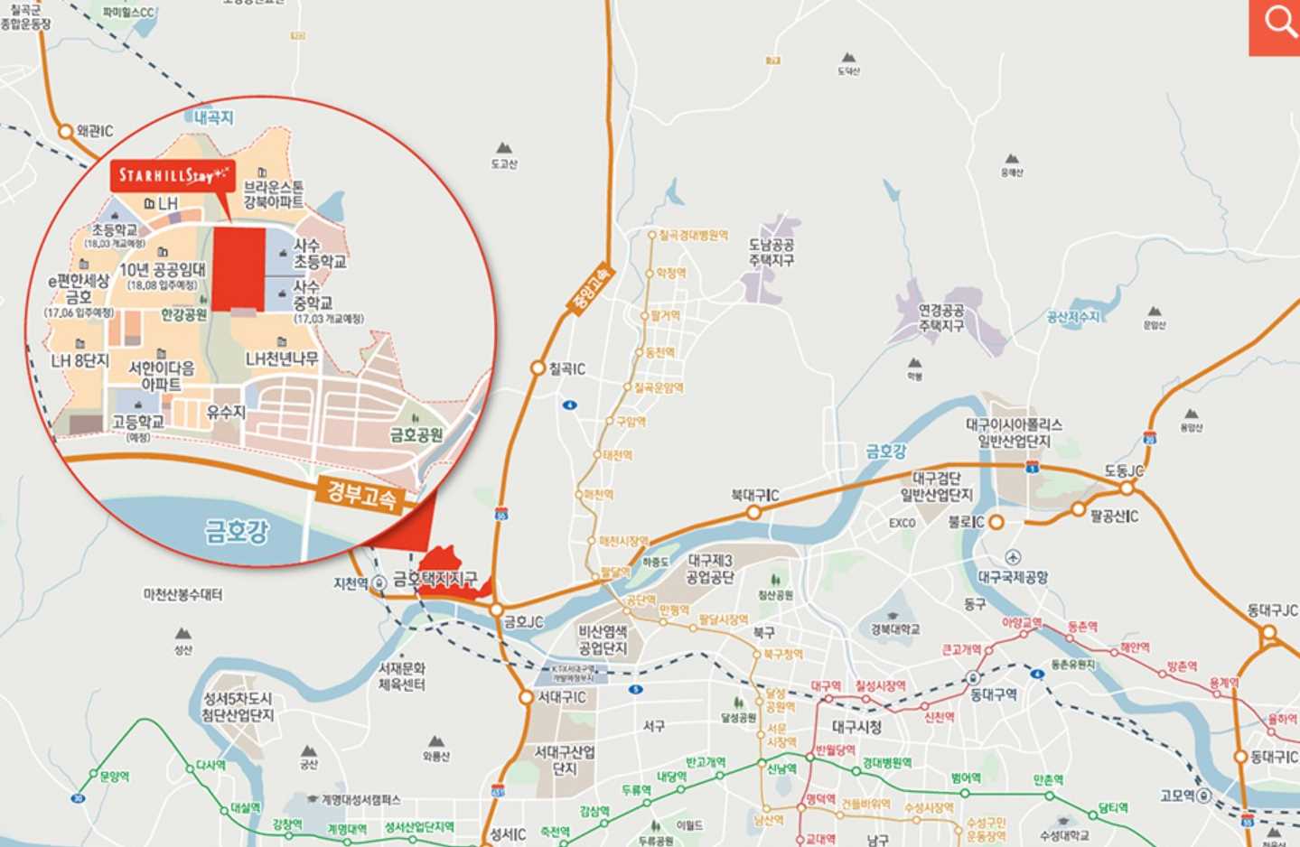 금호스타힐스테이는 대구광역시 북구에 위치하고 있습니다.
