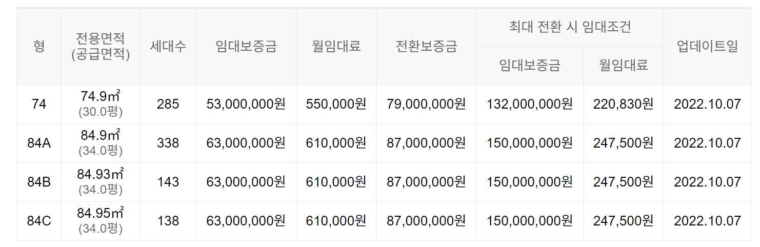 임대보증금 및 월 임대료는 입주자 모집공고일 기준이며, 보증금 최대 전환 시 변동될 수 있습니다.