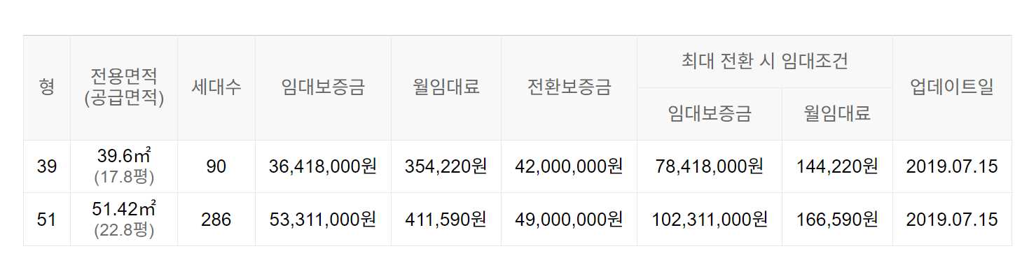 임대보증금 및 월 임대료는 입주자 모집공고일 기준이며, 보증금 최대 전환 시 변동될 수 있습니다.