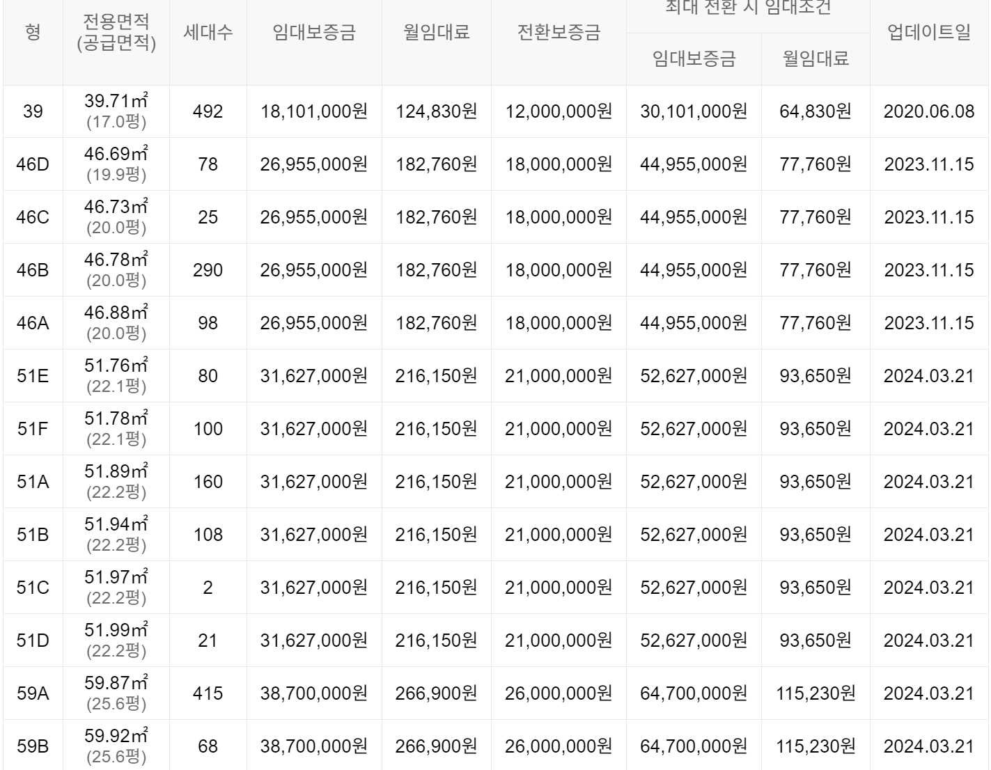 임대보증금 및 월 임대료는 입주자 모집공고일 기준이며, 보증금 최대 전환 시 변동될 수 있습니다.