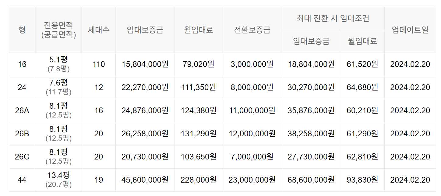 임대보증금 및 월 임대료는 입주자 모집공고일 기준이며, 보증금 최대 전환 시 변동될 수 있습니다.