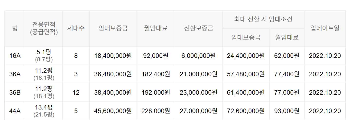 임대보증금 및 월 임대료는 입주자 모집공고일 기준이며, 보증금 최대 전환 시 변동될 수 있습니다.