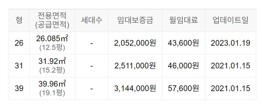 임대보증금 및 월 임대료는 입주자 모집공고일 기준이며, 보증금 최대 전환 시 변동될 수 있습니다.