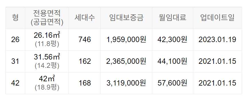 임대보증금 및 월 임대료는 입주자 모집공고일 기준이며, 보증금 최대 전환 시 변동될 수 있습니다.
