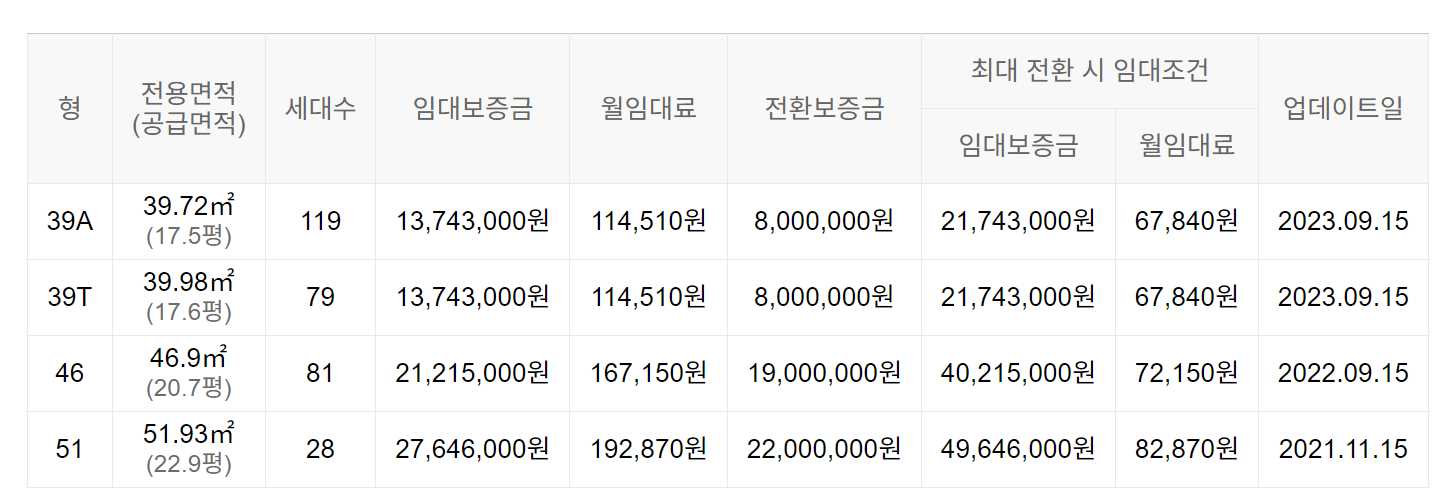 임대보증금 및 월 임대료는 입주자 모집공고일 기준이며, 보증금 최대 전환 시 변동될 수 있습니다.
