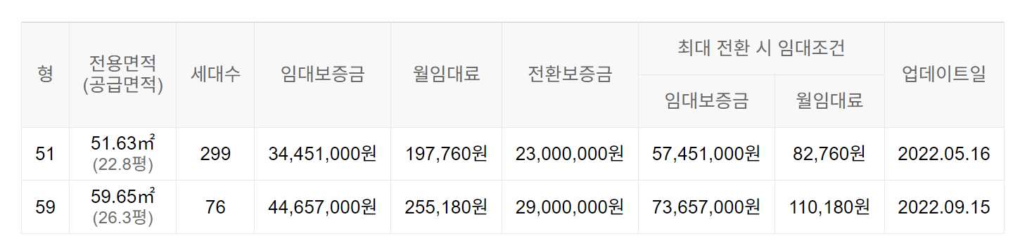 임대보증금 및 월 임대료는 입주자 모집공고일 기준이며, 보증금 최대 전환 시 변동될 수 있습니다.