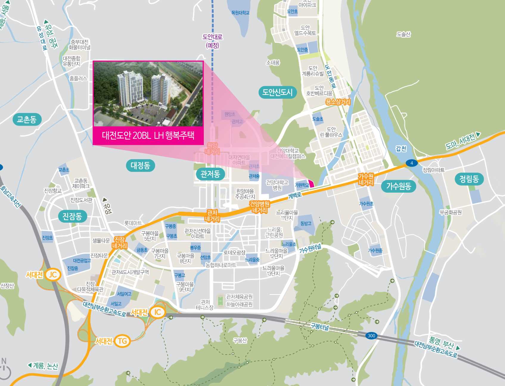 도안LH행복1단지는 대전광역시 서구에 위치하고 있습니다.