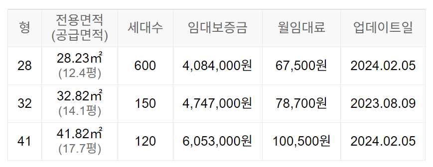 임대보증금 및 월 임대료는 입주자 모집공고일 기준이며, 보증금 최대 전환 시 변동될 수 있습니다.