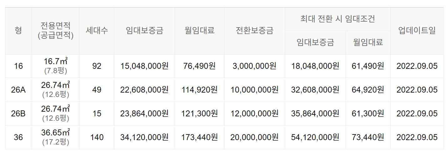 임대보증금 및 월 임대료는 입주자 모집공고일 기준이며, 보증금 최대 전환 시 변동될 수 있습니다.