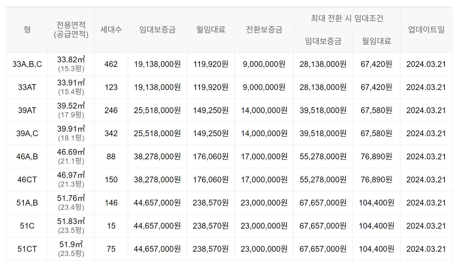 임대보증금 및 월 임대료는 입주자 모집공고일 기준이며, 보증금 최대 전환 시 변동될 수 있습니다.