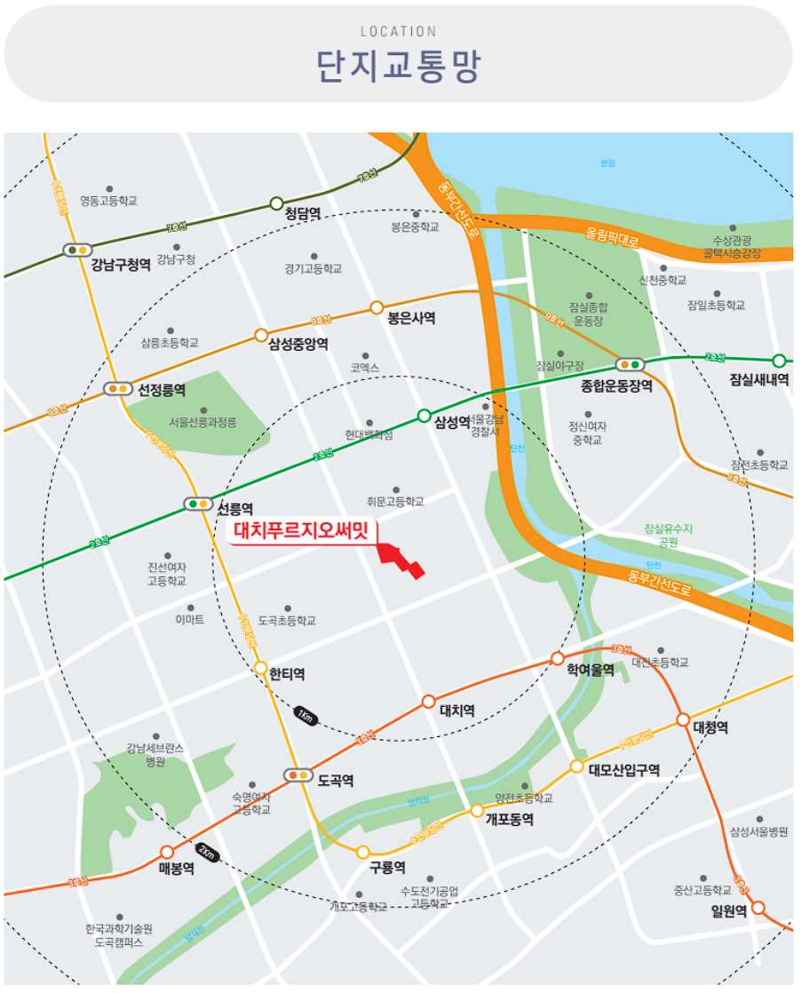 대치푸르지오써밋 행복주택은 서울 강남구 삼성역, 대치역, 한티역 근처에 위치하고 있습니다.