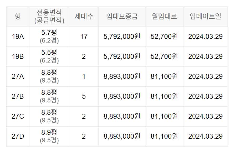 임대보증금 및 월 임대료는 입주자 모집공고일 기준이며, 보증금 최대 전환 시 변동될 수 있습니다.