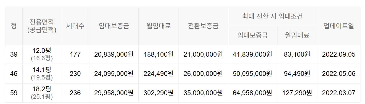 임대보증금 및 월 임대료는 입주자 모집공고일 기준이며, 보증금 최대 전환 시 변동될 수 있습니다.