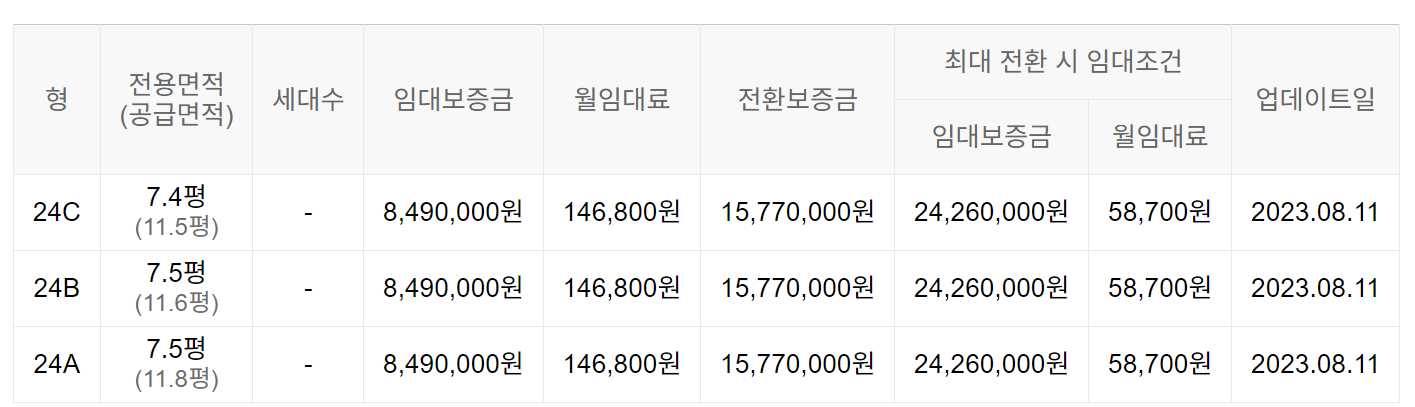 임대보증금 및 월 임대료는 입주자 모집공고일 기준이며, 보증금 최대 전환 시 변동될 수 있습니다.