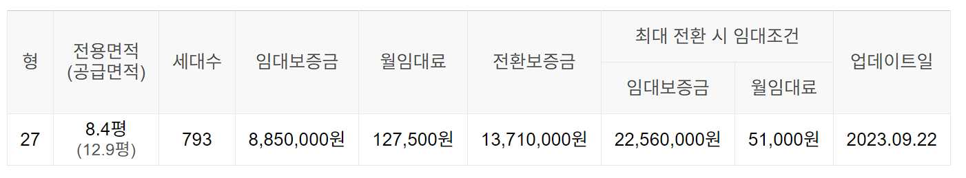 임대보증금 및 월 임대료는 입주자 모집공고일 기준이며, 보증금 최대 전환 시 변동될 수 있습니다.
