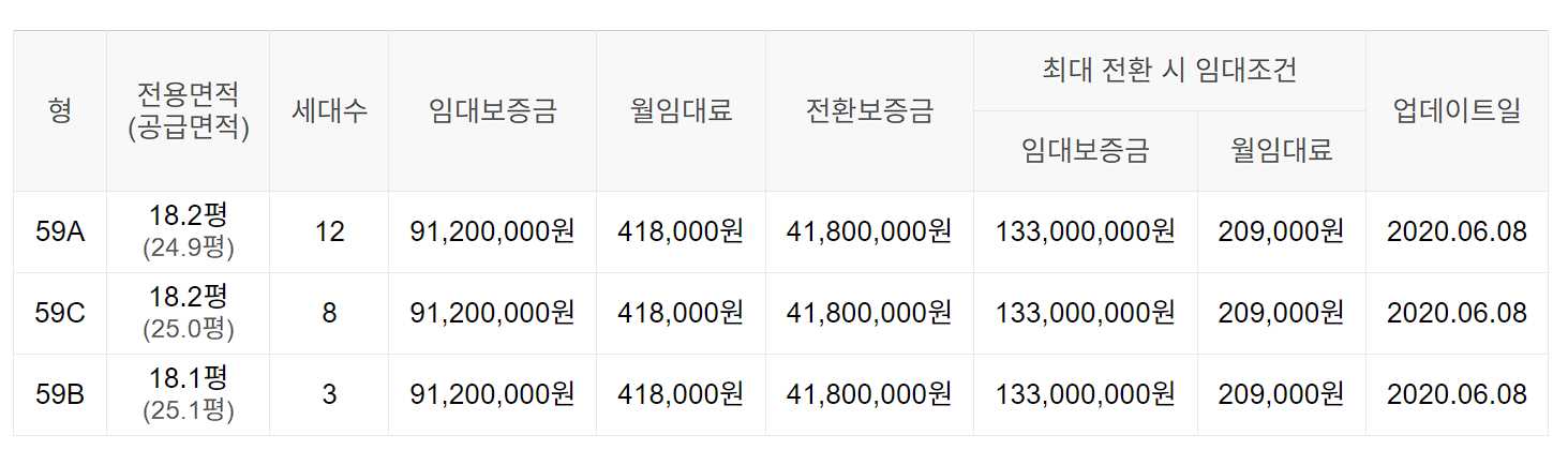 임대보증금 및 월 임대료는 입주자 모집공고일 기준이며, 보증금 최대 전환 시 변동될 수 있습니다.