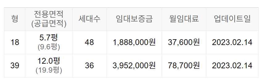 임대보증금 및 월 임대료는 입주자 모집공고일 기준이며, 보증금 최대 전환 시 변동될 수 있습니다.