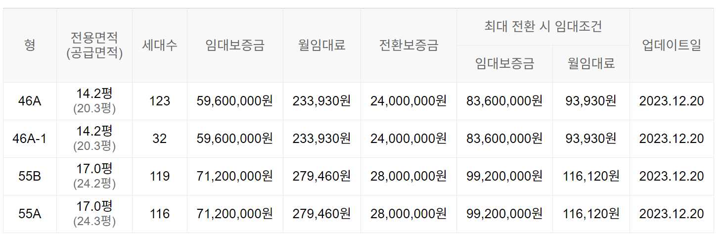 임대보증금 및 월 임대료는 입주자 모집공고일 기준이며, 보증금 최대 전환 시 변동될 수 있습니다.