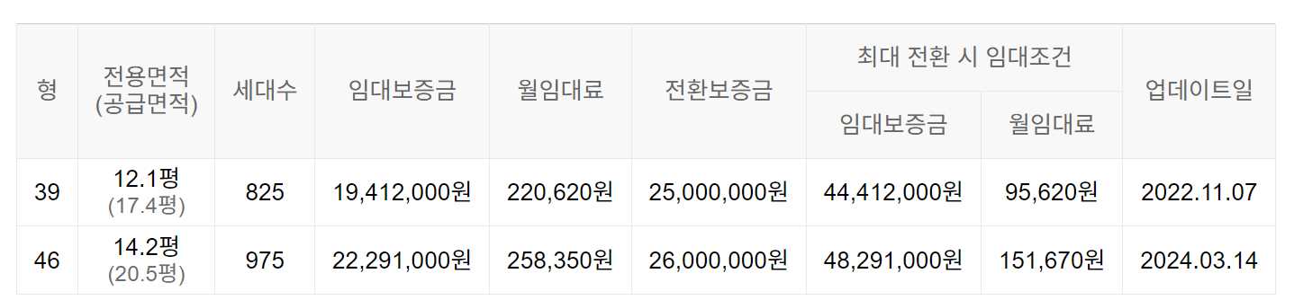임대보증금 및 월 임대료는 입주자 모집공고일 기준이며, 보증금 최대 전환 시 변동될 수 있습니다.