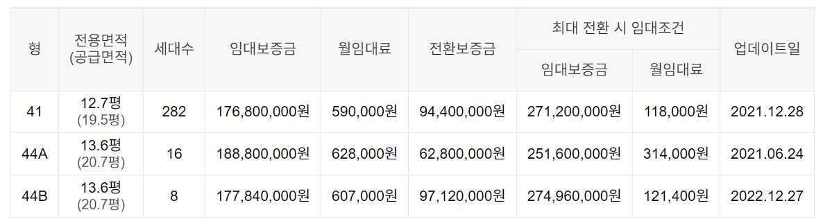 임대보증금 및 월 임대료는 입주자 모집공고일 기준이며, 보증금 최대 전환 시 변동될 수 있습니다.