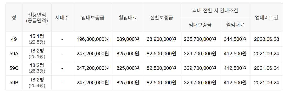 임대보증금 및 월 임대료는 입주자 모집공고일 기준이며, 보증금 최대 전환 시 변동될 수 있습니다.