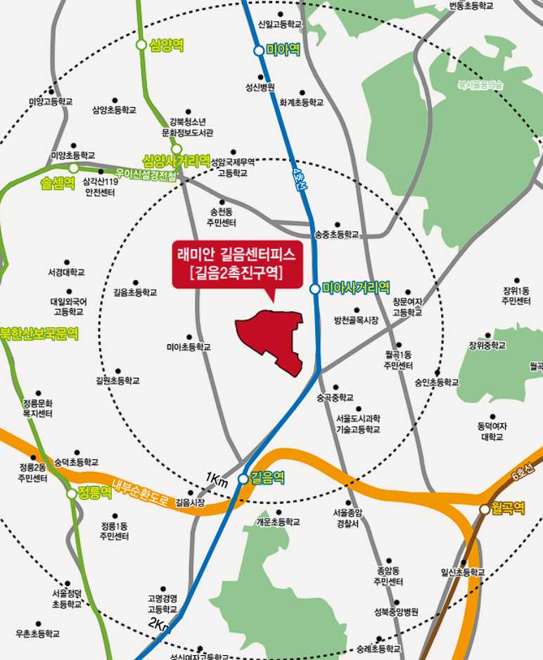 래미안길음센터피스는 서울 성북구 미아사거리역 근처에 위치하고 있습니다.