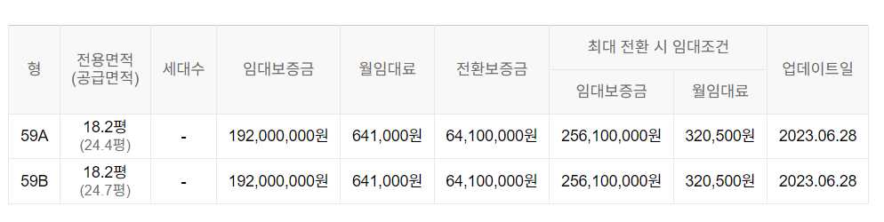 임대보증금 및 월 임대료는 입주자 모집공고일 기준이며, 보증금 최대 전환 시 변동될 수 있습니다.